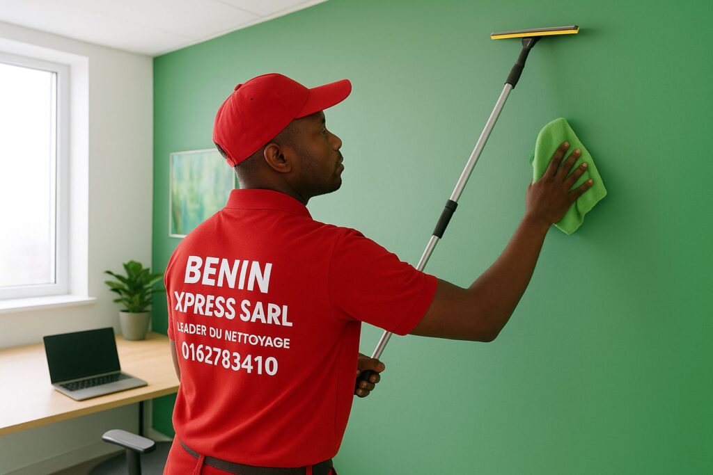 Chez Benin Xpress Sarl, nous appliquons systématiquement la méthode professionnelle du nettoyage du plafond au sol. Cette approche garantit des bureaux plus propres, plus sains et plus agréables à utiliser.